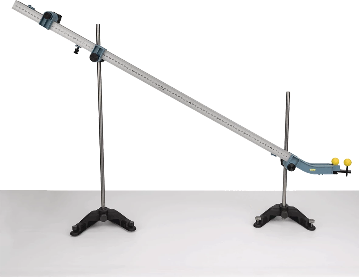 ME-7075 Ball Ramp е пълната версия на системата за рампа с топка — тя включва компоненти за рампа с топка (ME-7073), две алуминиеви мерителни ленти и безжична смарт хубка за измерване на скоростта на топката. Двете мерителни ленти образуват релсите. Кривият край изстрелва топката хоризонтално и съдържа вграден нивелир и точка за прикачване на фотовратка. Рампата с топката също може да се използва като наклонена плоскост. Съвместима е с аксесоара за 2D катастрофа (ME-7078) за изучаване на импулса и със стоп за край на рампата с топка (ME-7077). Изисква софтуера PASCO SPARKvue или Capstone.