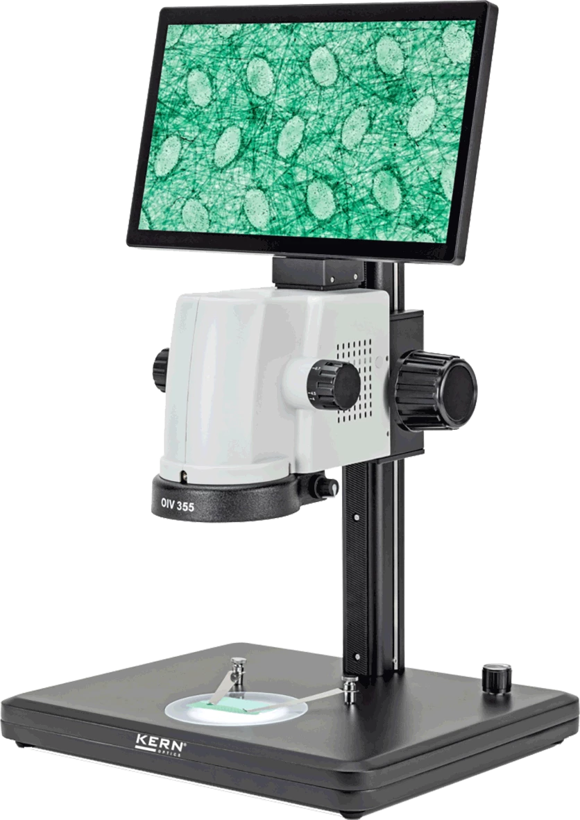 • KERN OIV 355 е видео микроскоп, което е проектирано за оптимизация на дигиталната стерео микроскопия. Добре проектирано, цялостно решение с аксиална оптична единица осигурява незабавен и лесен дисплей на вашите образци на екрана