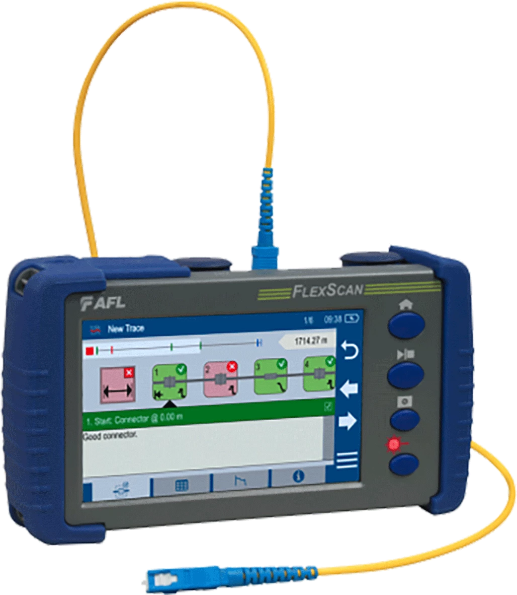 Напълно оборудван: С автоматизирани многопулсови задачи, до 45 dB динамичен диапазон и най-добрите в класа си мъртви зони, FlexScan OTDRs тества многомодови и/или единични мод мрежи – включително FTTH PONs и POLANs до сплит рейт 1:128 - докато все още открива и измерва събития на разстояния долу до <0.8 метра.
