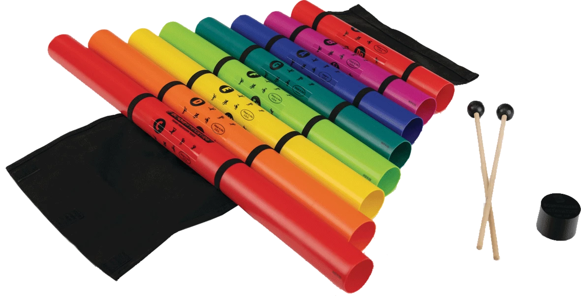 Тръбите могат да бъдат монтирани в приложенията за тях държач и удряни с двата включени молива, за да се свирят като ксилофон, предоставяйки привлекателен, музикален контекст за физика на вълните. Държачът на тръби подвежда като организатор за съхранение. Идеален за ученици от средното училище до университетски курсове по акустика и вълни.
